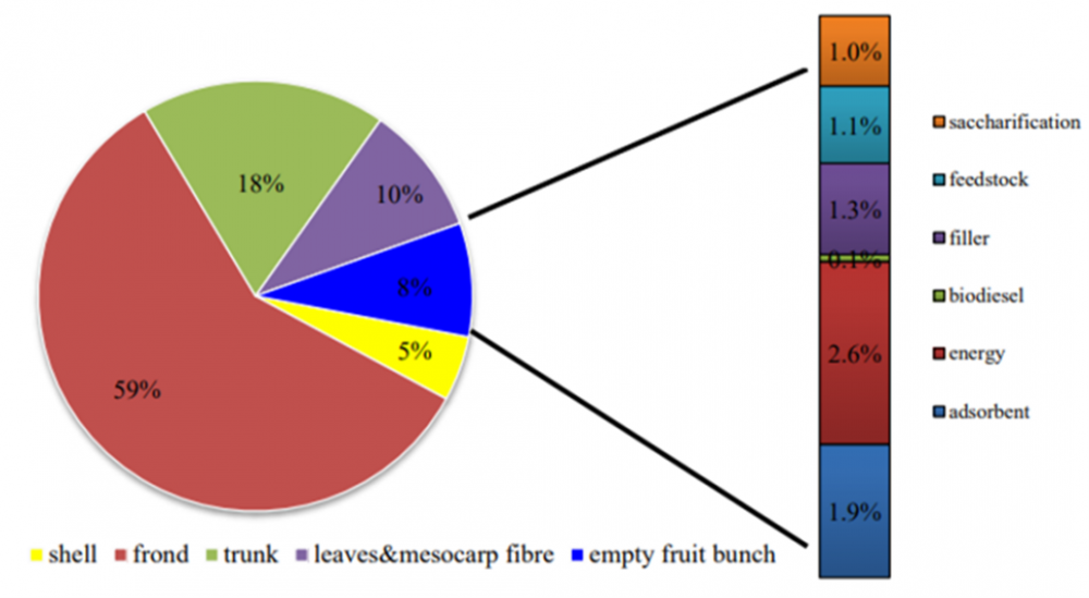 As a direct result of the expansion of the oil palm industry in Malaysia, more than 5.74 million hectares of oil palm plantations had been established across the country by 2016 (MPOB, 2016). The rapid growth of palm oil production has also led to a significant increase in the volume of waste generated. Approximately 85.5% of Malaysia’s total agricultural waste originates from the oil palm sector, making it the most significant single contributor to agricultural waste in the country. Most of this waste consists of empty fruit bunches (EFB), shells, kernels, fronds, leaves, and trunks (Sumathi et al., 2008). To promote sustainability, it is crucial to utilise this large volume of waste effectively.