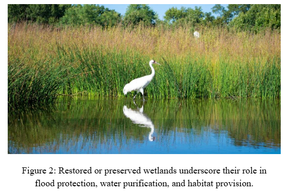 The conflict between development interests and ecological protection is evident throughout the literature. Costanza et al. (2014) estimate that wetlands provide global flood-protection services valued at billions of dollars annually. Yet, wetlands are still drained for real estate expansion, aquaculture, and infrastructure projects. This reveals a troubling paradox in which societies repeatedly choose short-term financial gain over long-term environmental security. It is not that people are unaware of wetlands’ benefits; somewhat, these benefits are undervalued because they do not appear as tangible profit. Flood damage, on the other hand, becomes painfully visible only after wetlands have been sacrificed.