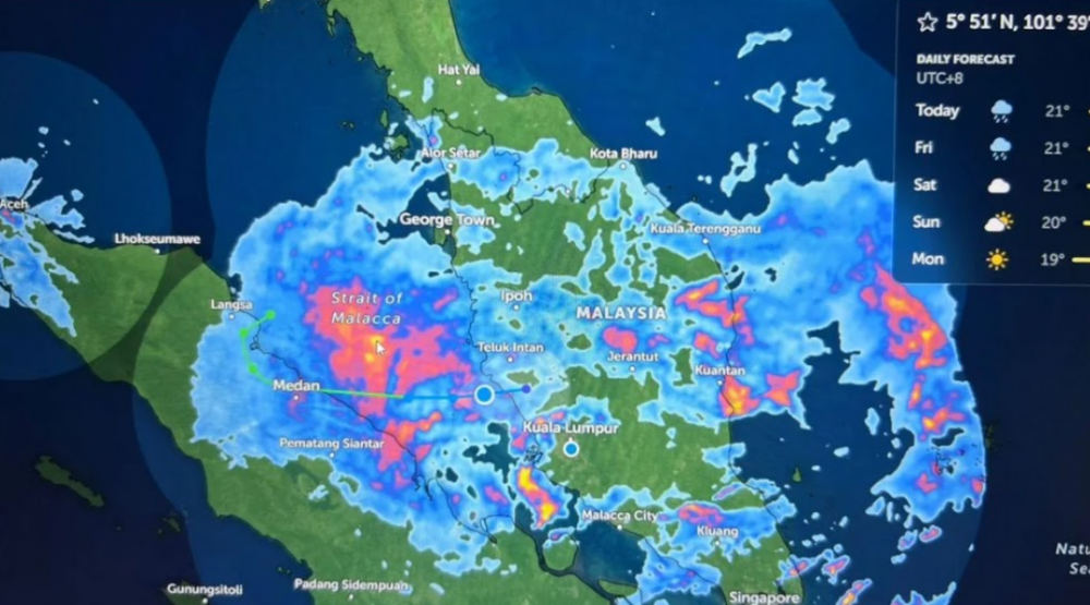 Tropical Storm Senyar brings heavy rain and strong winds to the west coast of Peninsular Malaysia, a rare phenomenon near the equator. – Zoom Earth photo (From Sina